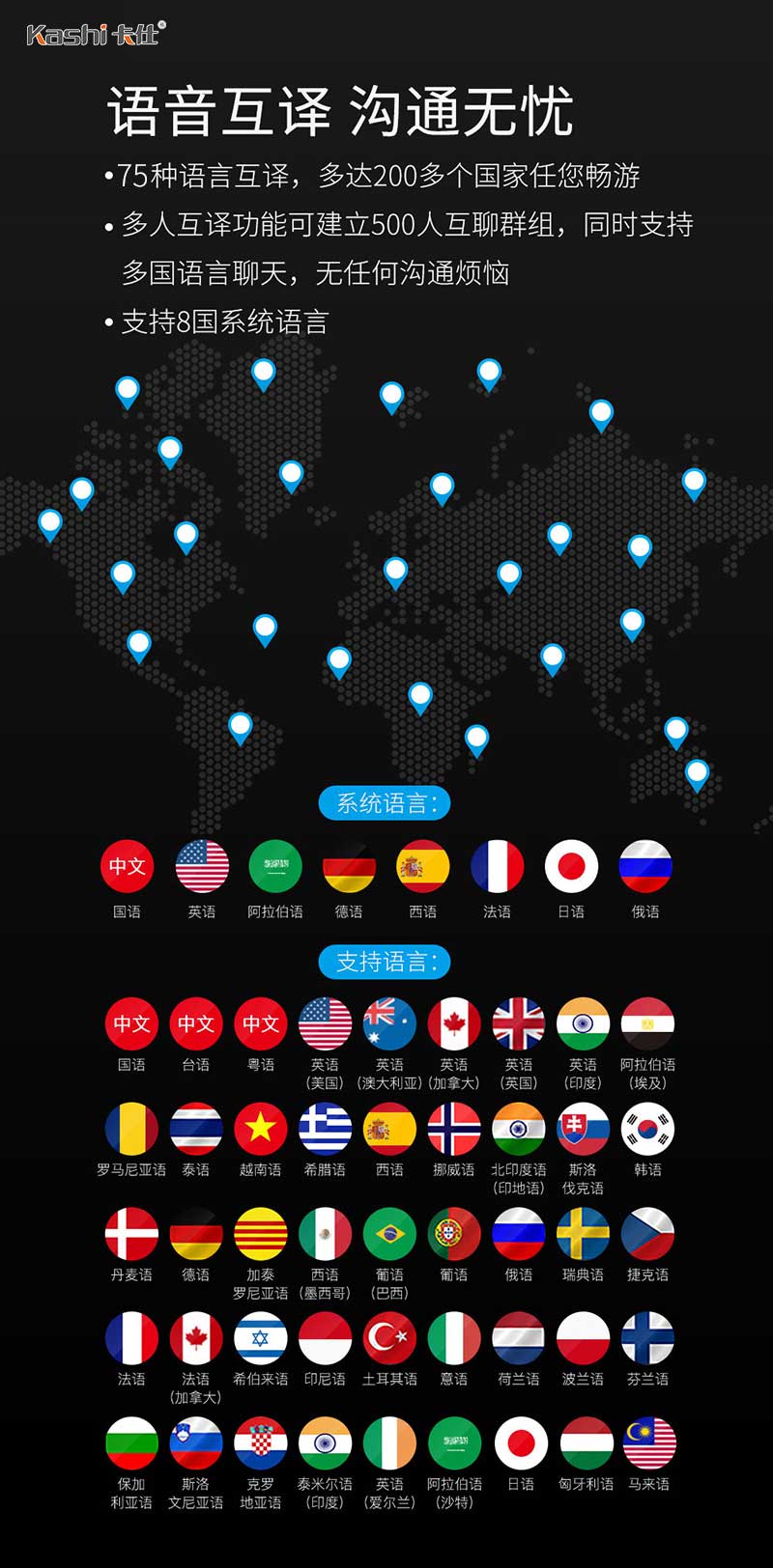同步語(yǔ)音翻譯機(jī)T10,多國(guó)語(yǔ)言同步語(yǔ)音-卡仕